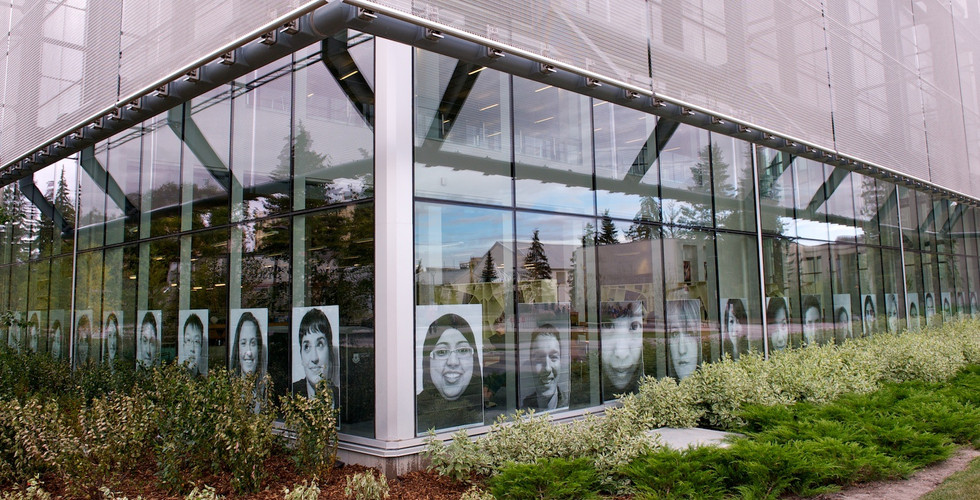 The Inside Out Project was a public art show created at the University of Calgary in collaboration with the Taylor Family Digital Library. Inspired by the TED prize winning project by French artist JR, the Inside Out Project saw us take more than 500 pictures of student faces and then print them on massive posters which were then displayed on windows throughout the library and walkways leading to the building. The project was well received and I still hear from people about it. It was an extraordinary amount of work, and we all learned a powerful lesson: our faces are beautiful. For a brief moment, our campus was defined by a collection of different types of people who came together and reminded us how lucky we are to be together. The project connected two large courses that were designed as part of a Fine Arts research project and were supported by volunteers, among whom was Jeff Watson, then a student, now a lawyer with the City of Calgary, and Donna Livingstone, then the head of the Taylor Family Digital Library and now the leader of the Glenbow Museum.